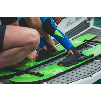 Fel gekleurde vinnen, maakt de skis goed zichtbaar in het water.